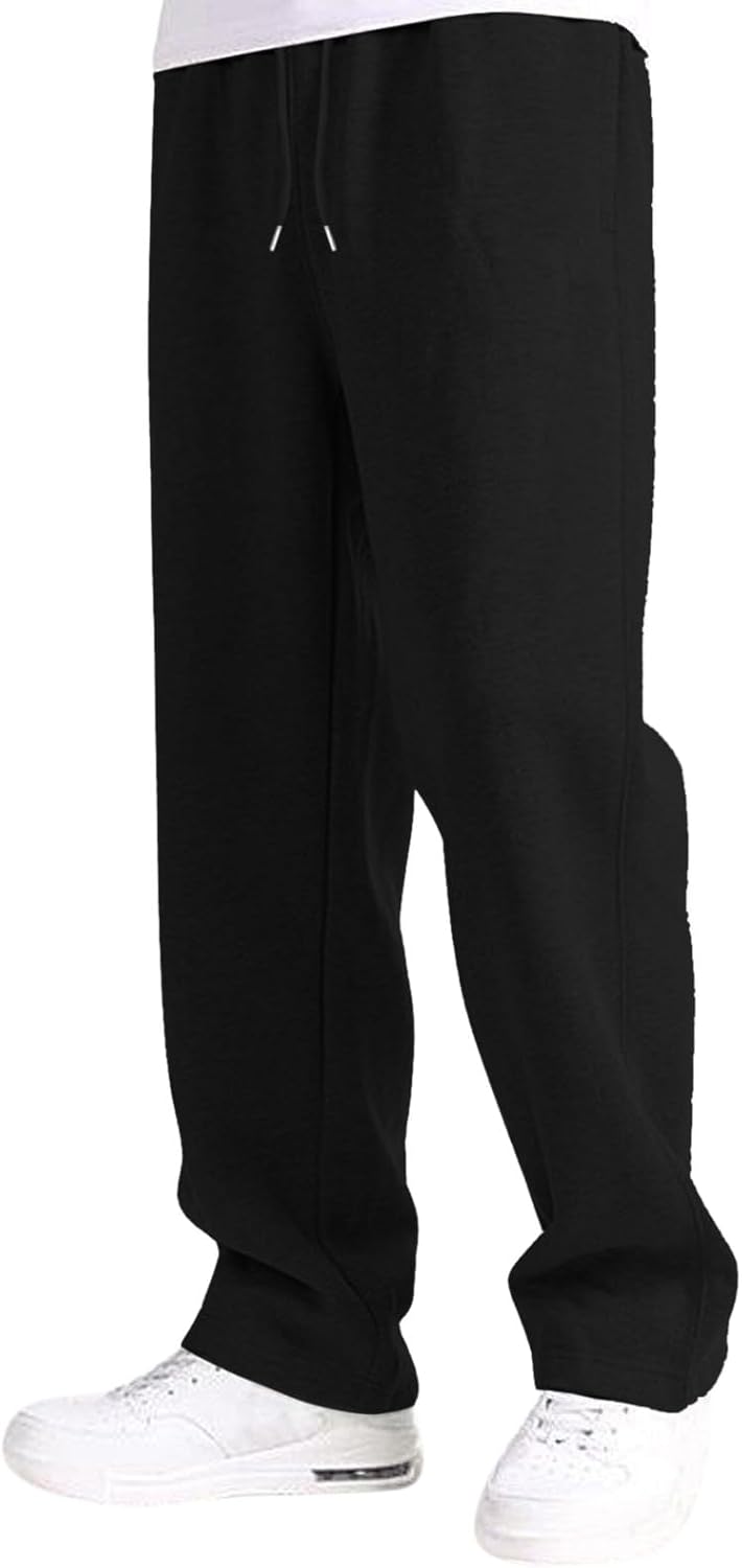 Men’s Baggy Sweatpants Fleece Straight Leg Casual Pants Elastic Waist Athletic Workout Jogger Sweat Pants Fall Winter