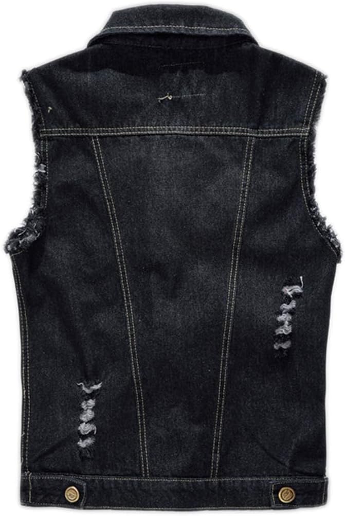 Men’s Casual Lapel Denim Vest Jacket Vintage Slim Fit Sleeveless Ripped Jeans Vests