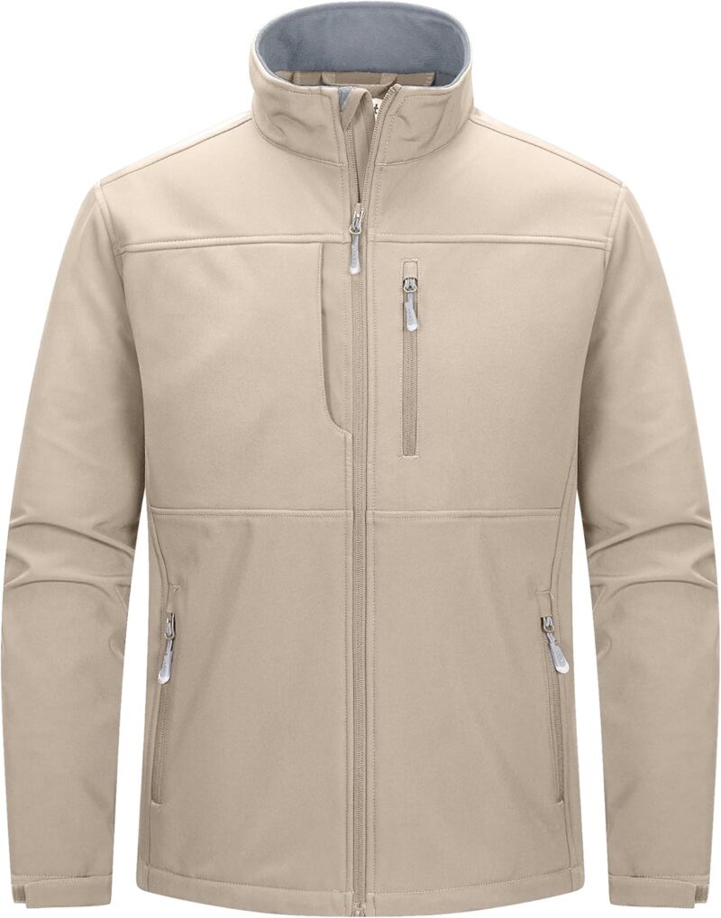 MEN’S WINDPROOF JACKET FOR WINTER, FALL & SPRING —The sleek softshell fabric is stain & abrasion resistant, windproof to keep you warm and neat. The fleece insulation traps heat, but still allows air to flow so you don’t overheat.