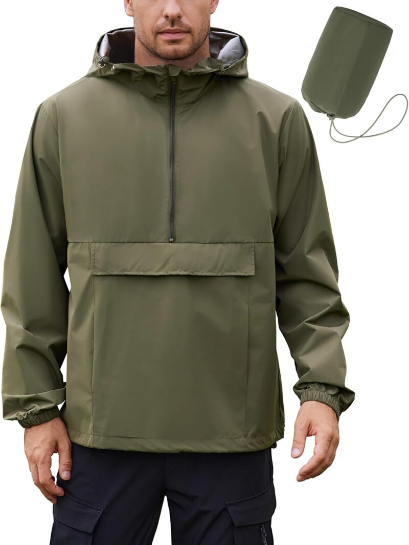 Men’s Rain Jacket Waterproof Lightweight Packable Raincoat Pullover Windbreaker With Hood For Hiking Running