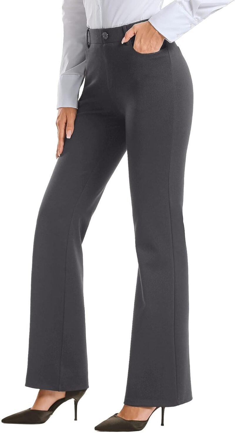 Women 28″/30″/ 32″ Bootcut Dress Pants Business Casual Work Pants with Pockets Pull On Regular Slacks for Office