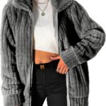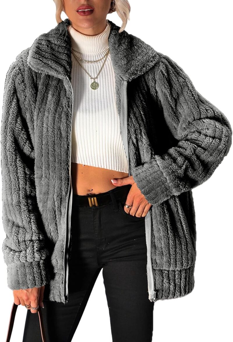 Women’s Fleece Jacket Women’s Full Zip Long Sleeve Lapel Collar Sherpa Coat Outerwear with Pockets (S-5XL)