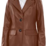 Women’s Lambskin Leather Jacket Leather Blazer Women’s – Women’s Button Closure Leather Blazer