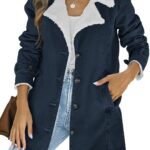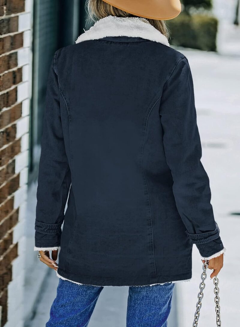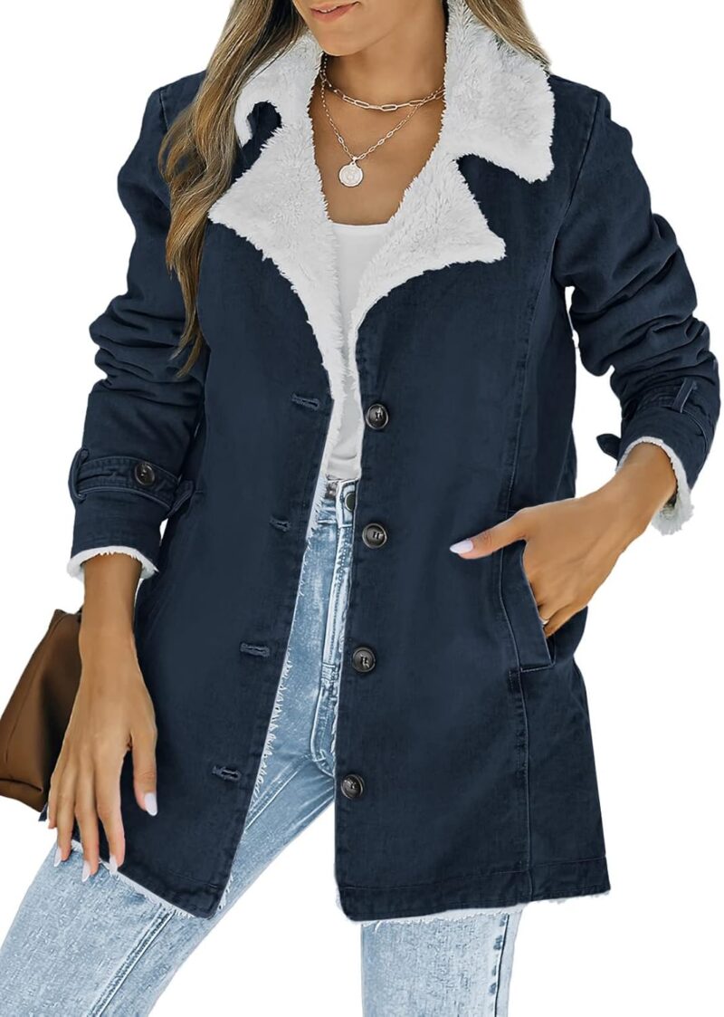 Women’s Winter Warm Jean Jacket Stand Collar Wool Liner Sherpa Denim Coats Thicker Outerwear with Pockets